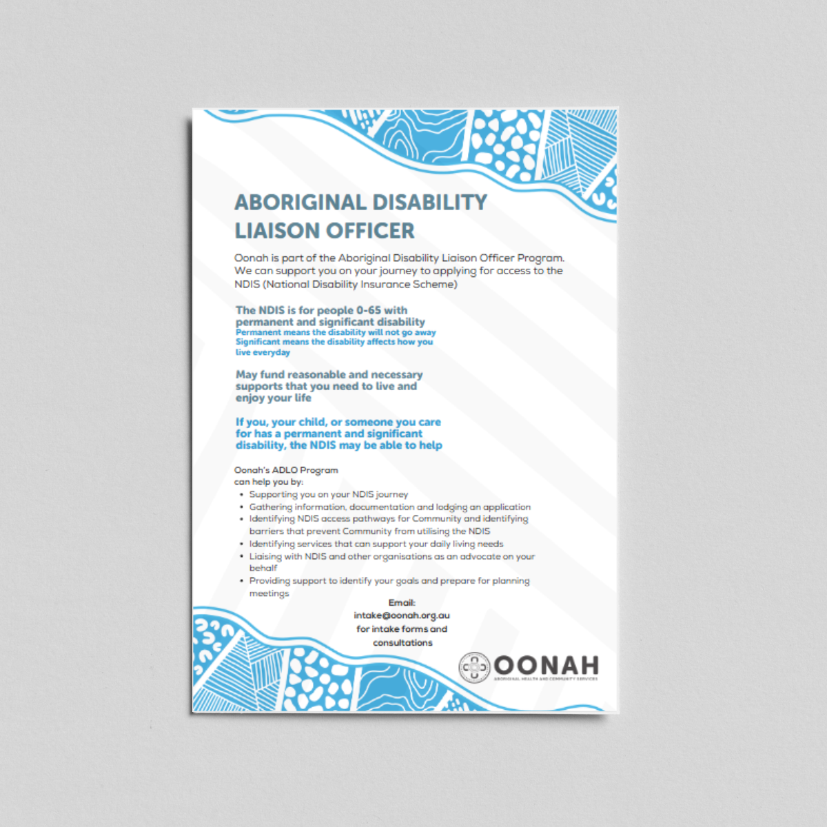 Oonah Aboriginal Community Controlled Health Organisation offers the ADLO program and will be able to assist with access to services under the NDIS when criteria is met in a culturally and safe manner.