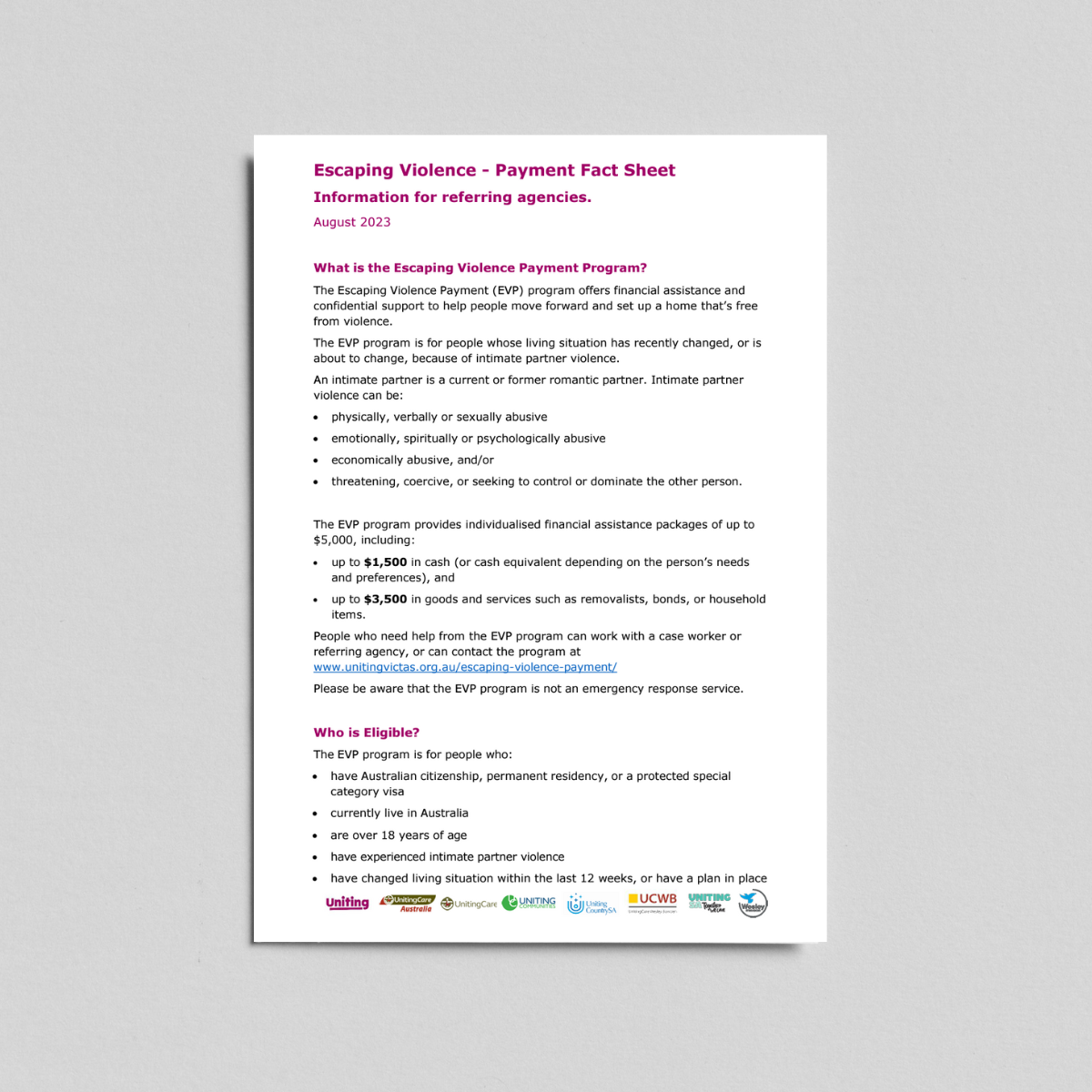 About this resource: The Escaping Violence Payment is available to people experience family violence who are: