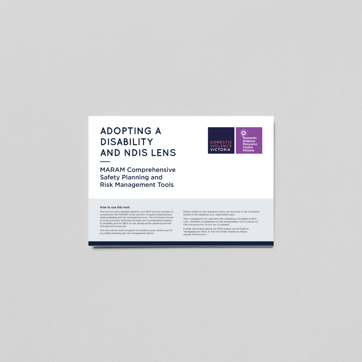 This tool is designed to be used prior to the “Adopting a Disability& NDIS Lens – MARAM Comprehensive Safety Planning & Risk Management” tool and can inform safety planning.