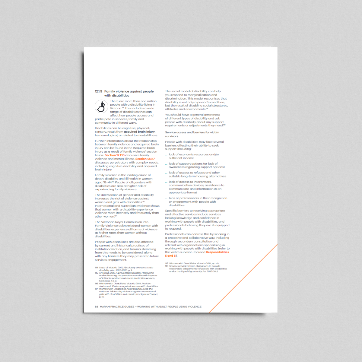 About this resource: Section 12.1.9 – Family Violence against people with disabilities and Section 12.1.10 – Family violence against people with mental health issues and mental illness