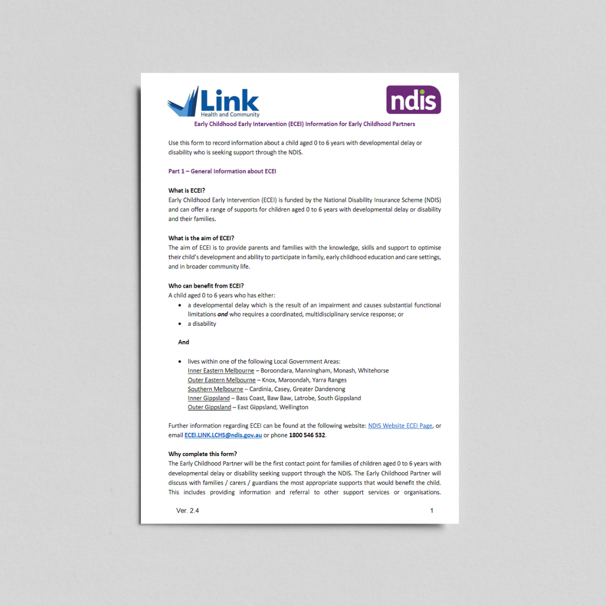 About this resource: Link Community Health – Early Childhood Early Intervention referral form.