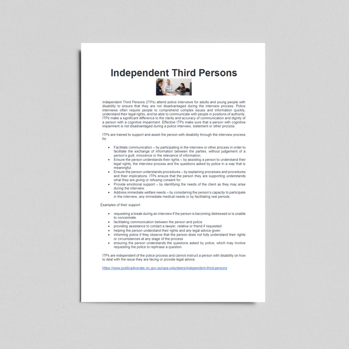 About this resource: Office of the Public Advocate (OPA) offer the Independent Third Persons Program.