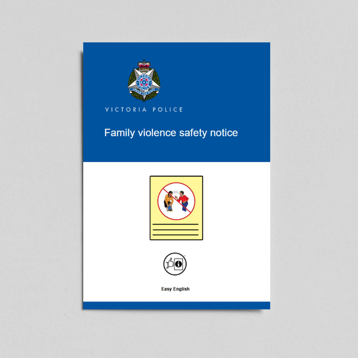 About this resource: An easy read resource produced by the Victoria Police that explains A Family Violence Safety Notice.