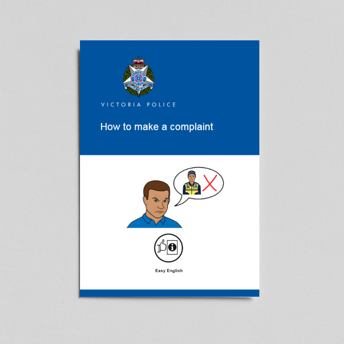 About this resource: An easy read resource produced by the Victoria Police that explains how a complaint to Victoria Police can be made