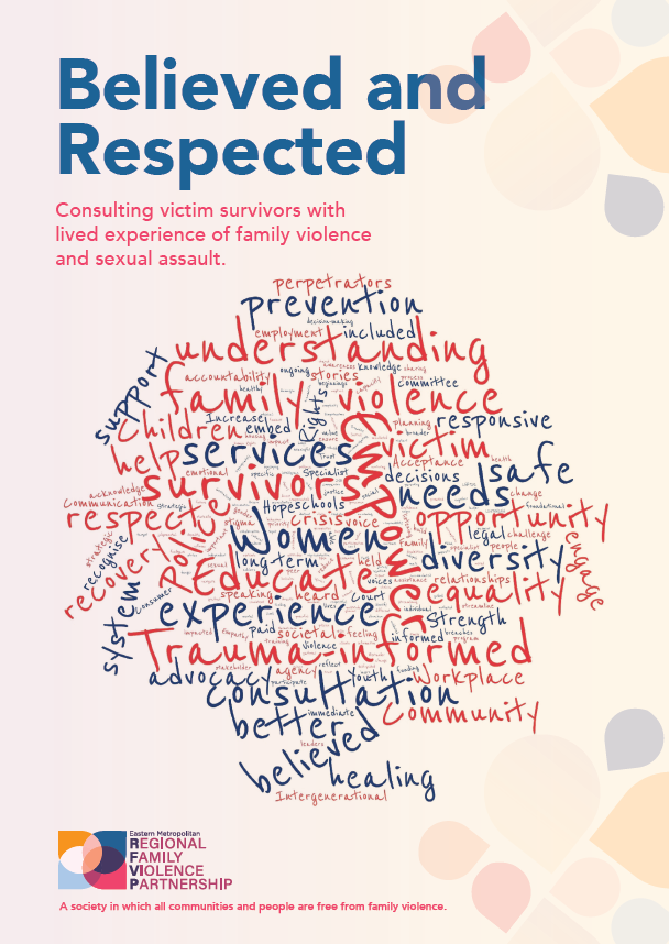 12 people with lived experience of family violence and accessing services in the East were interviewed as part of the project, including a child victim survivor and adult who had used violence.